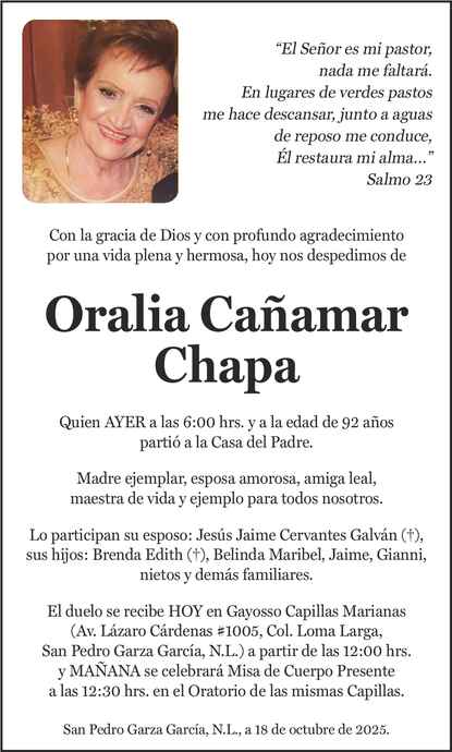 El duelo se recibe el 18 de octubre a partir de las 12:00 horas en GAYOSSO CAPILLAS MARIANAS