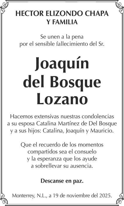 El duelo se recibe el 18 de noviembre a partir de las 10:30 horas en la Sala Mare de CAPILLAS VALLE DE LA PAZ
